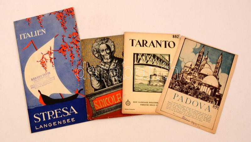 Beschreibung: cca 1920-1930 Olaszországgal kapcsolatos utazási prospektusok(Stresa, S.Nicola di Bari, Taranto, Padova), 4 db