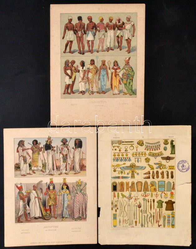 Beschreibung: cca 1920-30 Egyiptomi témájú nyomatok, 3db, lapszélen kis hibákkal, cca 32x24cm