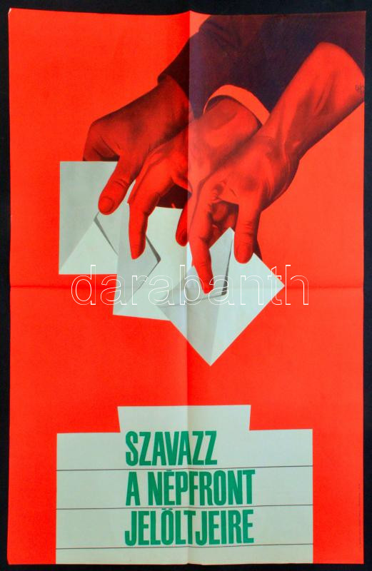 cca 1967 Szavazz a Népfront jelöltjeire! választási plakát, 80x55 cm. https://www.darabanth.com/de/274-Fernauktion/274.0/Andere-Sammelgebiete/Drucksachen~28/cca-1967-Szavazz-a-Nepfront-jeloltjeire-valasztasi-plakat-80x55-cm~II1396984