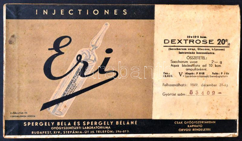 1949 Destrose gyógyszeresdoboz, 10 ampullával, Spergely Béla és Sperge... https://www.darabanth.com/de/274-Fernauktion/274.0/Andere-Sammelgebiete/Flohmarkt~11/1949-Destrose-gyogyszeresdoboz-10-ampullaval-Spergely-Bela-es-Spergely-Belane-Gyogyszeres~II1399836