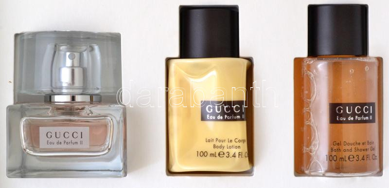 Gucci Eau de Parfum II szett, parfüm testápoló, tusfürdő, testápoló fl... https://www.darabanth.com/de/274-Fernauktion/274.0/Andere-Sammelgebiete/Flohmarkt~11/Gucci-Eau-de-Parfum-II-szett-parfum-testapolo-tusfurdo-testapolo-flakonja-benyomodva-9025-~II1401253