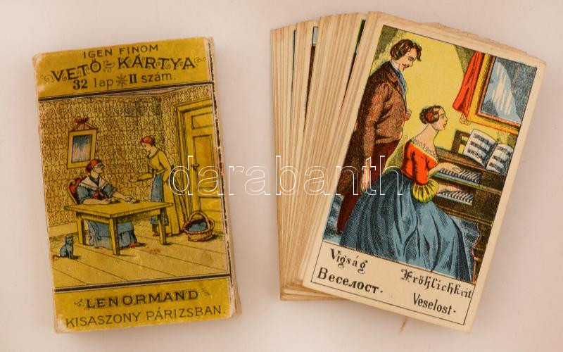 cca 1910 Igen Finom Vető Kártya, bontott csomagolásban, 32 lapos, négy... https://www.darabanth.com/de/274-Fernauktion/274.0/Andere-Sammelgebiete/Flohmarkt~11/cca-1910-Igen-Finom-Veto-Kartya-bontott-csomagolasban-32-lapos-negy-nyelvu-feliratokkal-a-d~II1397676