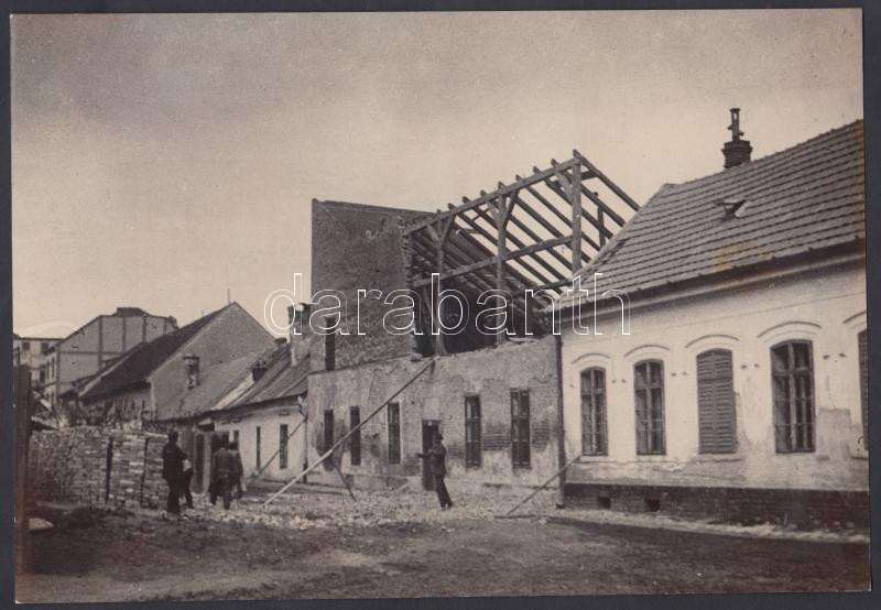 Beschreibung: 1915 Kerny István (1879-1963): Szeged, Szív utcai ház bontása, pecséttel jelzett vintage fotó, 16x23 cm