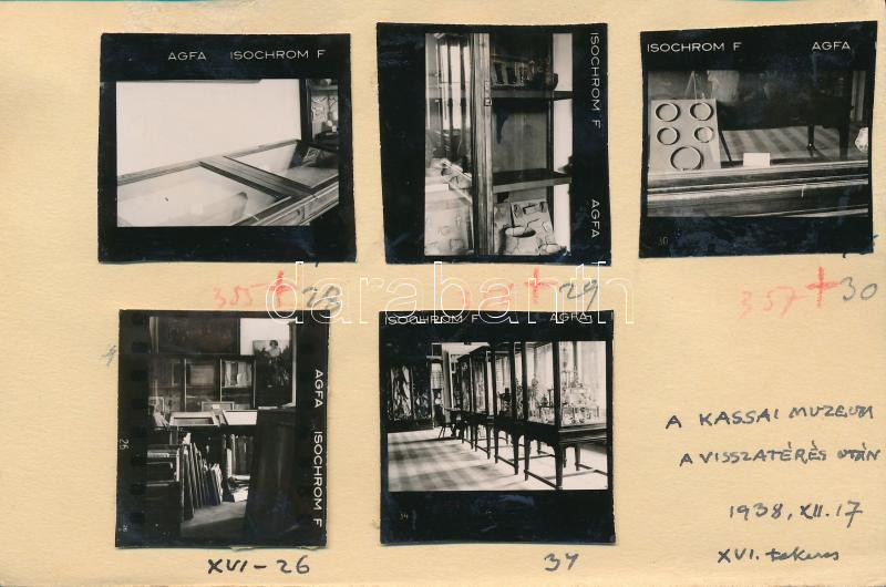 1938 A kifosztott kassai múzeum a visszatérés után, 5 db fotó kartonra ragasztva / looted Kosice museum, 5 photos on cardboard. 4×4 cm, karton 10×15 cm