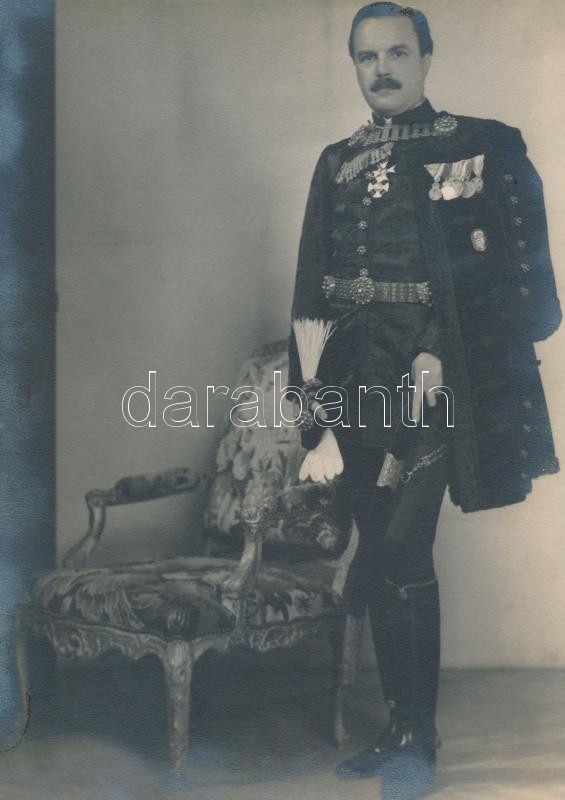 Beschreibung: Kozma Miklós (1884-1941) politikus, az MTI elnöke, rövid ideig honvédelmi miniszter egészalakos díszegyenruhás fotója 16x21 cm
