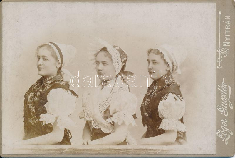cca 1890 Nyitrai lányok népviseletben; Keményhátú kabinetfotó Lőger Gu... https://www.darabanth.com/de/274-Fernauktion/274.0/Andere-Sammelgebiete/Foto~19/cca-1890-Nyitrai-lanyok-nepviseletben-Kemenyhatu-kabinetfoto-Loger-Gusztav-nyitrai-mutermC3~II1399563