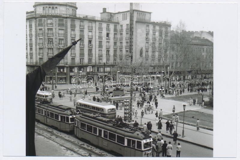 Beschreibung: cca 1965-1970 Budapest, Villamosok és buszok az Astoriánál, utólagos előhívás, 10x15 cm
