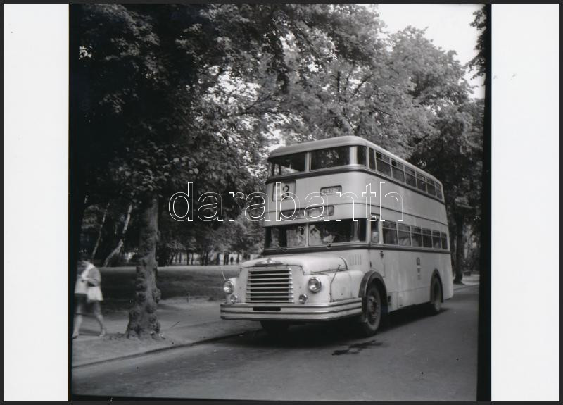 Beschreibung: cca 1970 Emeletes autóbusz ismeretlen helyszínen, korabeli negatívról készült modern nagyítás, 13x13 cm