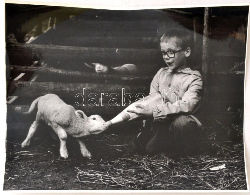 Beschreibung: cca 1970 Gondoskodó kisgazda, vintage fotó, 23x29 cm