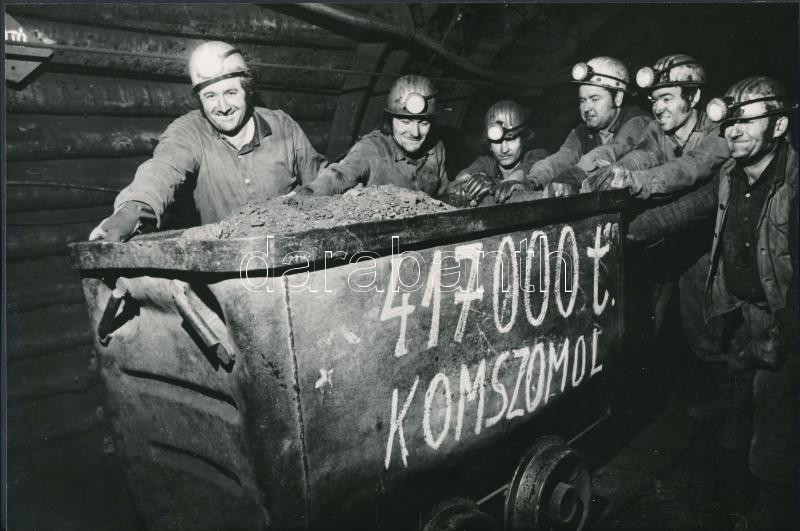 cca 1979 Oroszlány, XXII-es akna Komszomol brigádja ez évben 417.000 t... https://www.darabanth.com/de/274-Fernauktion/274.0/Andere-Sammelgebiete/Foto~19/cca-1979-Oroszlany-XXII-es-akna-Komszomol-brigadja-ez-evben-417000-tonna-szenet-banyaszott-v~II1396101