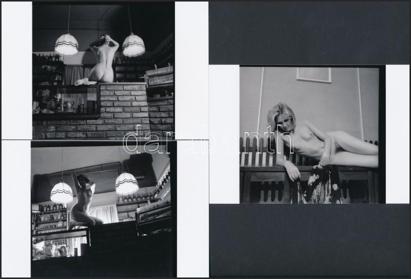 Beschreibung: cca 1979 Vendégváró pultoslány, 4 db finoman erotikus fénykép, korabeli negatívokról készült mai nagyítások, 10x15 cm / 4 erotic photos, 10x15 cm