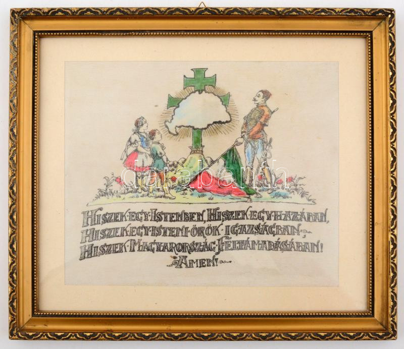 cca 1920 Hiszekegy, irredenta emléktárgy. Festett selyem, (korabeli) ü... https://www.darabanth.com/de/274-Fernauktion/274.0/Andere-Sammelgebiete/Historische-Dokumenten-Handschriften~17/cca-1920-Hiszekegy-irredenta-emlektargy-Festett-selyem-korabeli-uvegezett-keretben-19C39723-c~II1400580