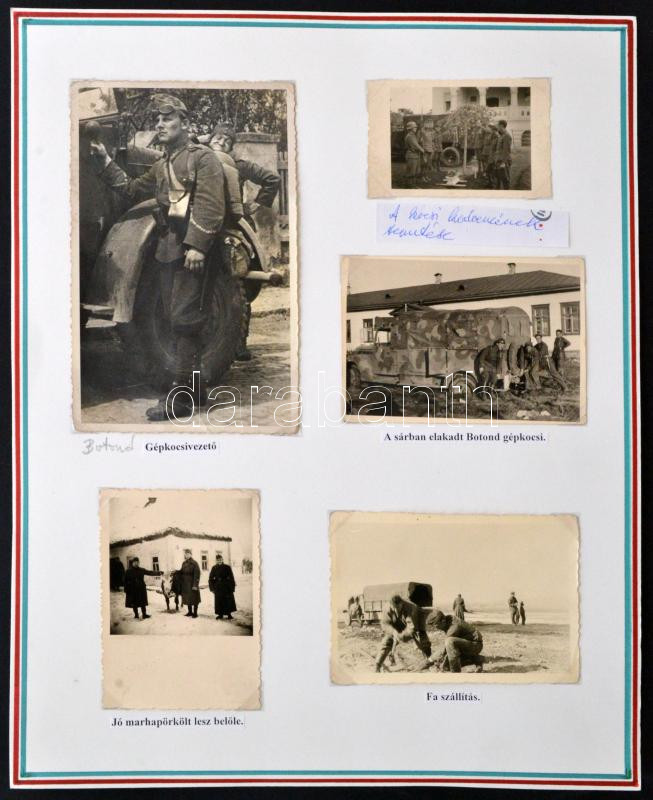 1943 Magyar katonák és Botond gépkocsi legénysége a keleti fronton. 6 ... https://www.darabanth.com/de/274-Fernauktion/274.0/Andere-Sammelgebiete/Militaria~26/1943-Magyar-katonak-es-Botond-gepkocsi-legenysege-a-keleti-fronton-6-feliratozott-foto~II1393171