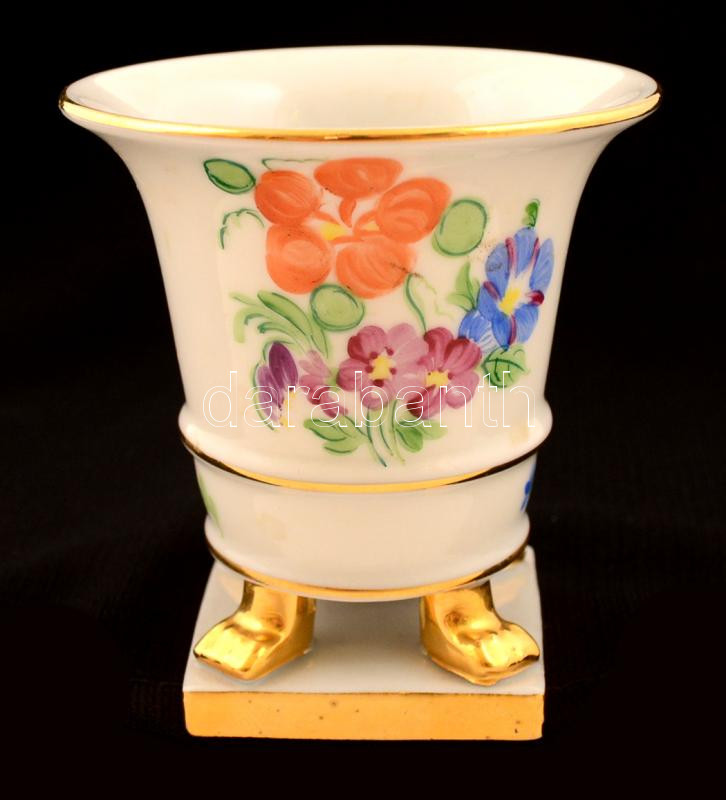 Beschreibung: Herendi virág mintás kis kaspó, kézzel festett, jelzett (Tertia), pici kopással, m: 8 cm.