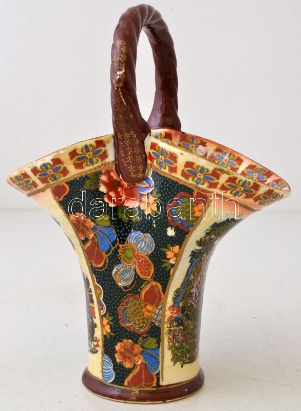 Beschreibung: Távol keleti porcelán tárgyak: Buddha női figura, kosár, részben kézzel festett, kosár jelzett, hibátlanok, összesen: 3 db, m:12-23 cm
