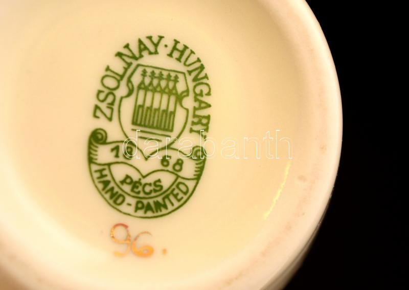 Zsolnay virág mintás váza, kézzel festett, jelzett, hibátlan, m:16,5 c... https://www.darabanth.com/de/274-Fernauktion/274.0/Andere-Sammelgebiete/Porzellan~7/Zsolnay-virag-mintas-vaza-kezzel-festett-jelzett-hibatlan-m16-5-cm~II1394783