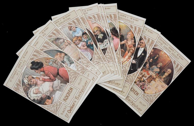 Beschreibung: 12 lapos Dr. Oetker reklámkártya sorozat, reprint, 16x10 cm.