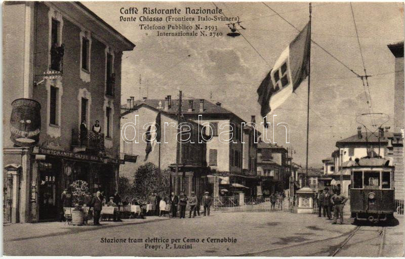 Beschreibung: Ponte Chiasso, Caffé Ristorante Nazionale / café, restaurant, tram (Rb)