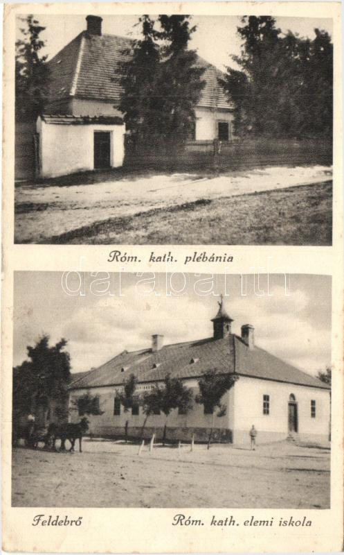 Beschreibung: Feldebrő, Római katolikus plébánia, római katolikus elemi iskola, Hangya Szövetkezet kiadása (EK)