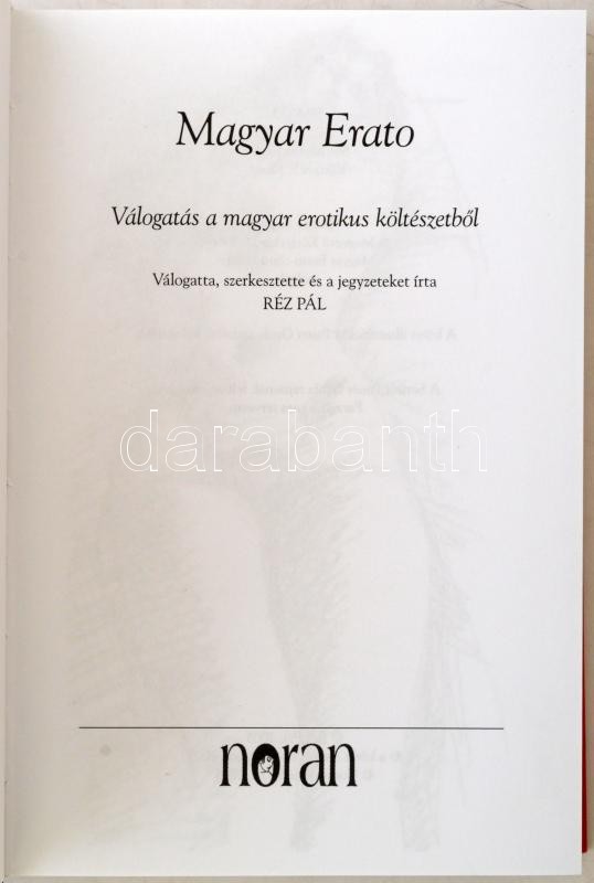 Magyar Erato. Válogatás a magyar erotikus költészetből. Szerk.: Réz Pál. Bp., 2005, Noran. Kartonált papírkötésben, papír védőborítóval, jó állapotban.