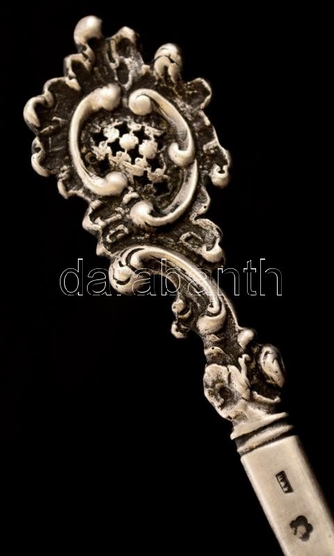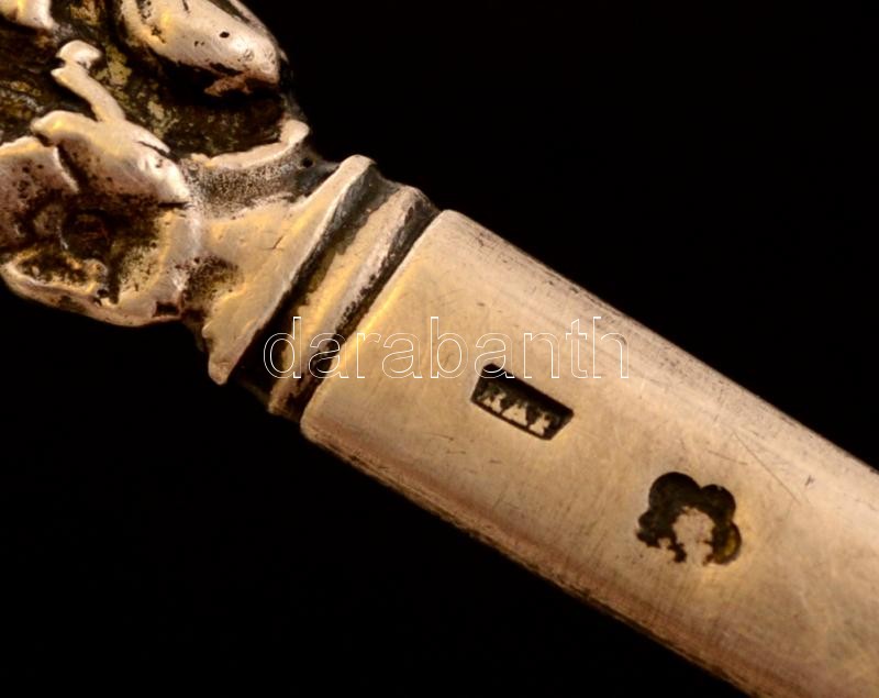 Ezüst, címeres levélbontó, Ag., nettó: 29gr., jelzett, RAF mesterjeggyel, 19cm / Silver letter openers, Ag, net. 29gr, marked, RAF master's ticket, 19 cm