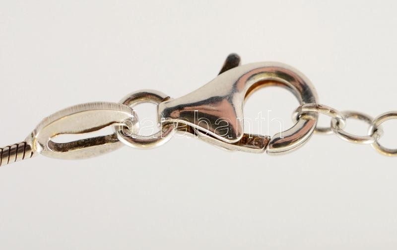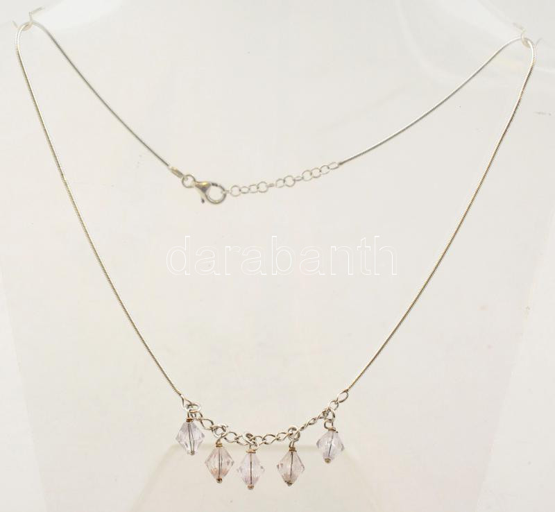 Beschreibung: Ezüst(Ag), halványlila gyöngyökkel díszített nyaklánc, állítható hosszúságú, jelzett, h: 42 cm, bruttó: 5,9 g