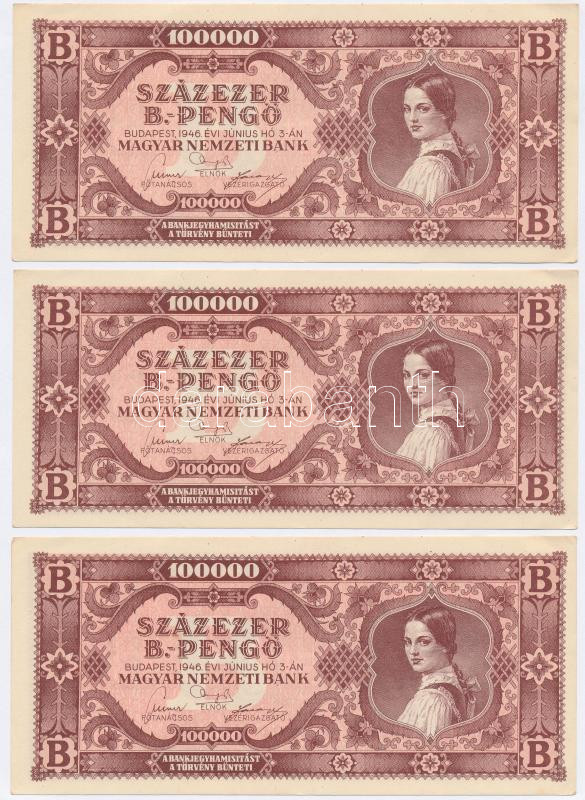 1946. 100.000BP (5x) T:I,I- https://www.darabanth.com/de/274-Fernauktion/274.0/Numismatik/Ungarische-Banknoten~200011/1946-100000BP-5x-TI-I-~II1398109