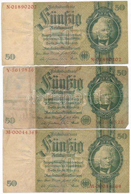 German Third Reich 1933.... https://www.darabanth.com/de/274-Fernauktion/274.0/Numismatik/Weltweit-Banknoten~200016/Nemet-3-Birodalom-1933-50M-5x-TIII-III---German-Third-Reich-1933-50-Mark-5x-CF-VG~II1401008