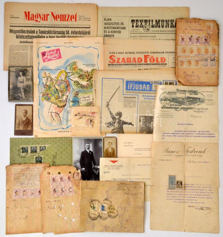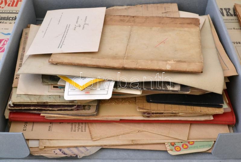 Vegyes nyomtatvány és okmány tétel: különféle érdekes újságok, igazolv... https://www.darabanth.com/de/275-Fernauktion/275.0/Andere-Sammelgebiete/Drucksachen~200265/Vegyes-nyomtatvany-es-okmany-tetel-kulonfele-erdekes-ujsagok-igazolvanyok-stb-erdek~II1406415