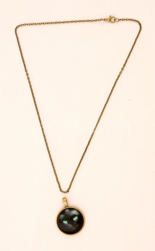 Beschreibung: Rézszínű üveglencsés cicás medál lánccal