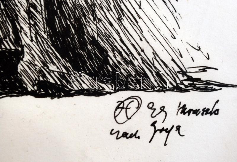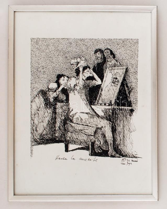 Beschreibung: Olvashatatlan jelzéssel: Goya után: Hasta la muerte, tus, papír, üvegezett fa keretben, 23×25,5 cm