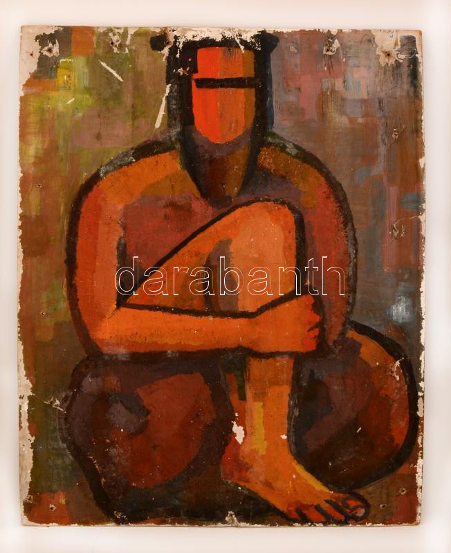 Beschreibung: Olvashatatlan jelzéssel: Ülő alak. Olaj, farost, sérült, 63×50 cm