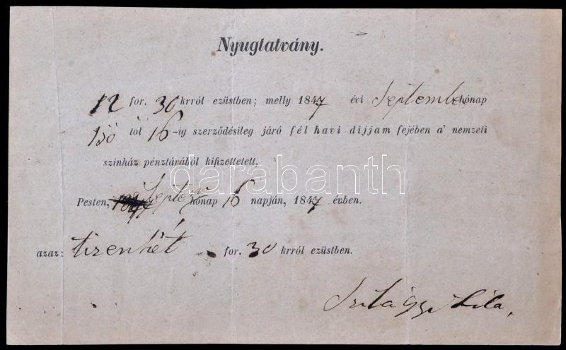 1847 Bulyovszkyné Szilágyi Lilla (1833-1909) Színésznő színházi tiszte... https://www.darabanth.com/de/275-Fernauktion/275.0/Andere-Sammelgebiete/Signatur~200240/1847-Bulyovszkyne-Szilagyi-Lilla-1833-1909-Szineszno-szinhazi-tiszteletdijarol-szolo-n~II1405391