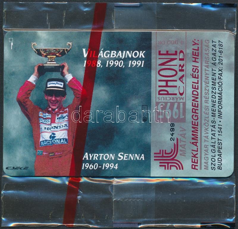 1995 Ayrton Senna motívumos telefonkártya, bontatlan csomagolásban https://www.darabanth.com/de/275-Fernauktion/275.0/Andere-Sammelgebiete/Telefonkarte~200244/1995-Ayrton-Senna-motivumos-telefonkartya-bontatlan-csomagolasban~II1402646