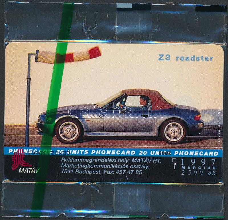 1997 BMW Z3 motívumos telefonkártya, bontatlan csomagolásban https://www.darabanth.com/de/275-Fernauktion/275.0/Andere-Sammelgebiete/Telefonkarte~200244/1997-BMW-Z3-motivumos-telefonkartya-bontatlan-csomagolasban~II1402623