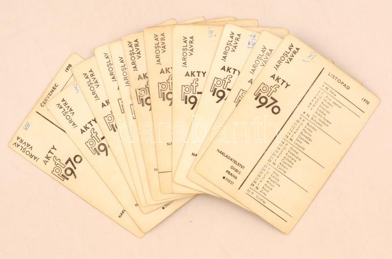 1970 Jaroslav Vávra művészi akt sorozata (12 db) kártyanaptáron, egyik... https://www.darabanth.com/de/275-Fernauktion/275.0/Andere-Sammelgebiete/Werbungen~200242/1970-Jaroslav-Vavra-muveszi-akt-sorozata-12-db-kartyanaptaron-egyik-celuksszal-ragasztott~II1406642