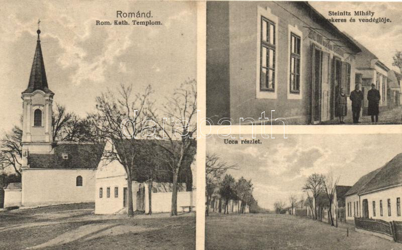 Románd, Steinitz Mihály vaskereskedése és vendéglője, templom, utcarés... https://www.darabanth.com/de/275-Fernauktion/275.0/Ansichtskarten/Burgenland~400017/Romand-Steinitz-Mihaly-vaskereskedese-es-vendegloje-templom-utcareszlet-Kalman-fenyke~II1407254