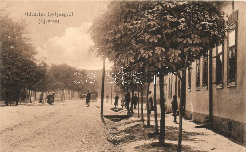 Ipolyság, Sahy; Újváros, utcarészlet, kiadja Polgár J. / street https://www.darabanth.com/de/275-Fernauktion/275.0/Ansichtskarten/Slowakei~400013/Ipolysag-Sahy-Ujvaros-utcareszlet-kiadja-Polgar-J-street~II1407093