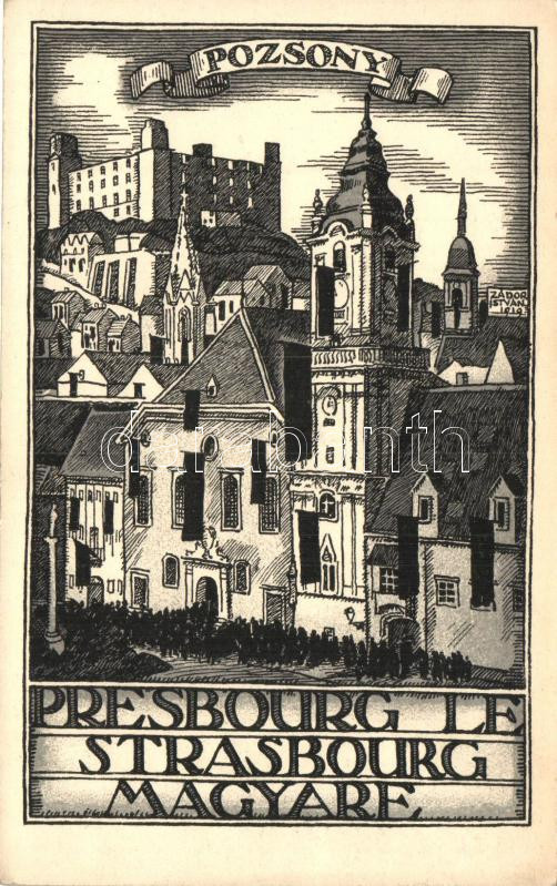 Beschreibung: Pozsony, A magyar Strassbourg! Itt sohse laktak csehek / Hungarian irredenta propaganda art postcard s: Zádor István