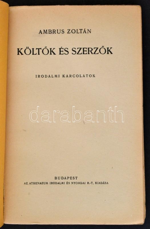 Ambrus Zoltán Költők és szerzők. Irodalmi karcolatok. Budapest, é.n., ... https://www.darabanth.com/de/275-Fernauktion/275.0/Bucher/Bucher-Sonstige-Raritaten~200263/Ambrus-Zoltan-Koltok-es-szerzok-Irodalmi-karcolatok-Budapest-en-Athenaeum-Kiadas-165-p~II1404493