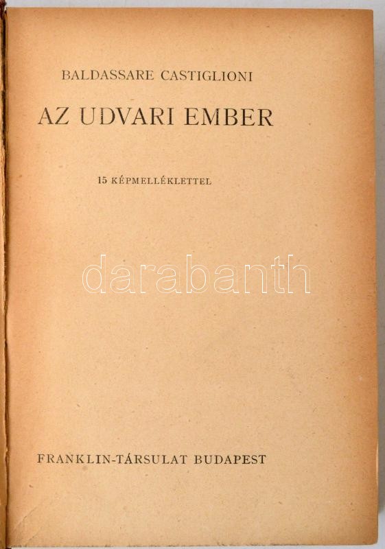 Baldassare Castiglioni: Az udvari ember. Fordította Gróf Zichy Rafaelné. Budapest, é.n., Franklin-Társulat. Fekete-fehér képmellékletekkel. Kiadói egészvászon kötés. A borítója picit kopott, a kötése picit meglazult. Ezt leszámítva jó állapotban.
