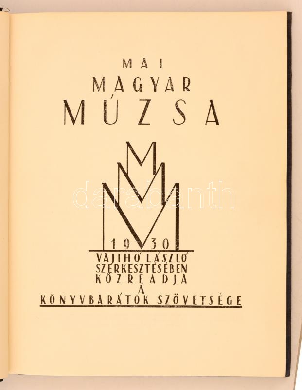 Vajthó László(szerk.): Mai magyar múzsa. Bp., 1930, Könyvbarátok Szöve... https://www.darabanth.com/de/275-Fernauktion/275.0/Bucher/Bucher-Sonstige-Raritaten~200263/Vajtho-Laszloszerk-Mai-magyar-muzsa-Bp-1930-Konyvbaratok-Szovetsege-Kiadoi-felva~II1405843