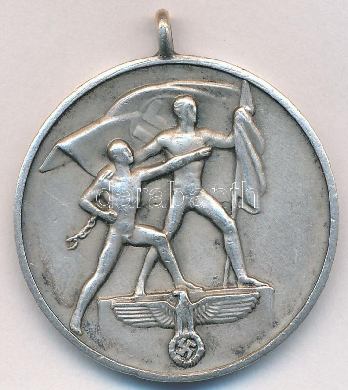Német 3. Birodalom 1938. "Anschluss emlékmedál" ezüstözött Br medál, szalag nélkül. "EIN VOLK - EIN REICH - EIN FÜHRER - 13. März 1938" (32mm) T:2