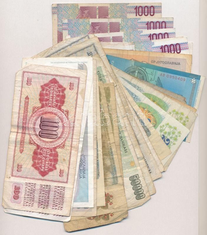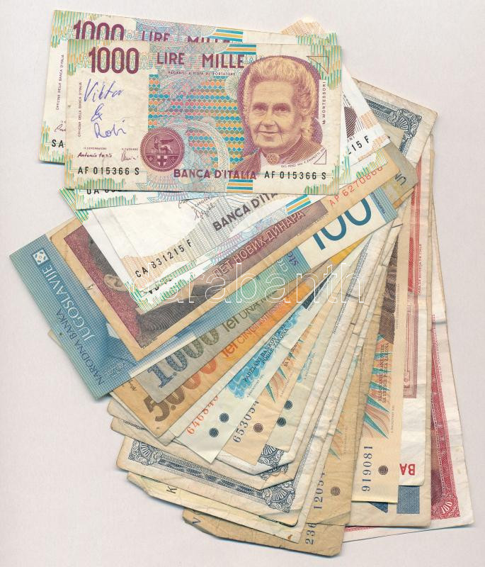 30db-os vegyes külföldi bankjegy tétel, közte Csehszlovákia, Jugoszlávia, Olaszország, Törökország T:III,III-