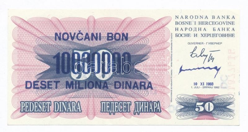 Beschreibung: Bosznia-Hercegovina 1993. (1992) 50D "Novcani Bon 10.000.000 Deset Miliona Dinara" felülbélyegzéssel T:I-