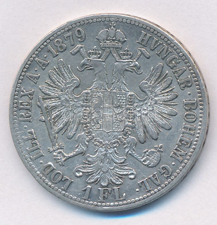 Austria 1879. ... https://www.darabanth.com/de/275-Fernauktion/275.0/Numismatik/Weltweit-Munzen~300013/Ausztria-1879-1Fl-Ag-Ferenc-Jozsef-T2-2---Austria-1879-1-Florin-Ag-Franz-Joseph-CXF-VF--Kra~II1403590