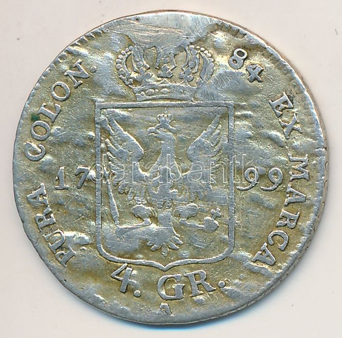 Német Államok / Poroszország 1799A 4g Ag "III. Frigyes Vilmos" (5,11g) kopott aranyozással T:2-,3 fülnyom German States / Prussia 1799A 4 Groschen Ag "Friedrich Wilhelm III" (5,11g) worn gold plating C:VF,F earmark Krause KM#370