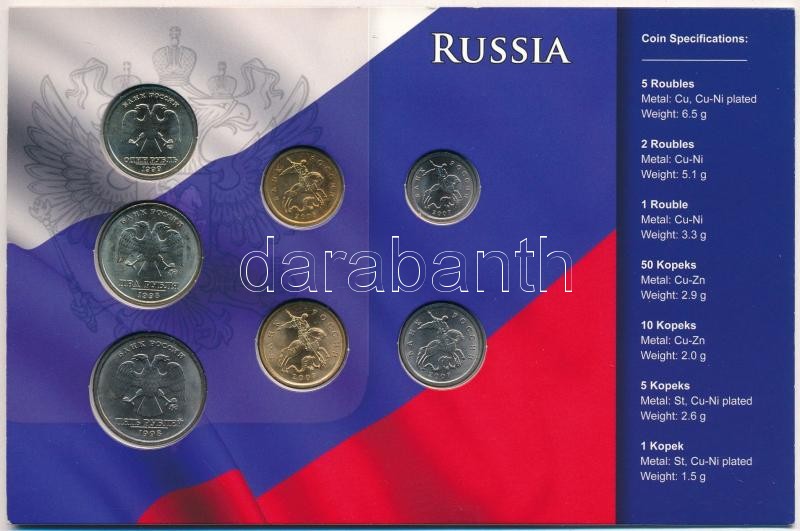 Beschreibung: Oroszország 1998-2008. 1k-5R (7xklf) fémpénz szettben, papírtokban T:2