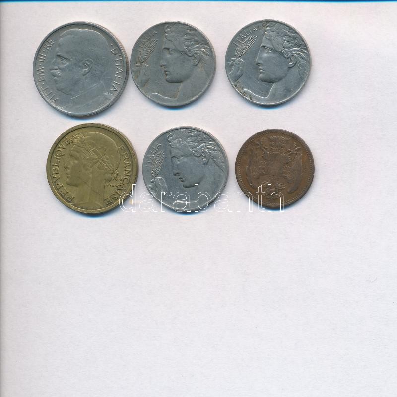 Vegyes: Franciaország 1941. 1Fr Al-Br + Olaszország 1913R 20c Ni + 1920R 20c Ni + 50c Ni recés peremmel + 1922R 20c Ni + Szerbia 1904. 2p Br T:2,2- Mixed: France 1941. 1 Franc Al-Br + Italy 1913R 20 Centesimi Ni + 1920R 20 Centesimi Ni + 50 Centesimi Ni with reeded edge + 1922R 20 Centesimi Ni + Serbia 1904. 2 Pare Br C:XF,VF