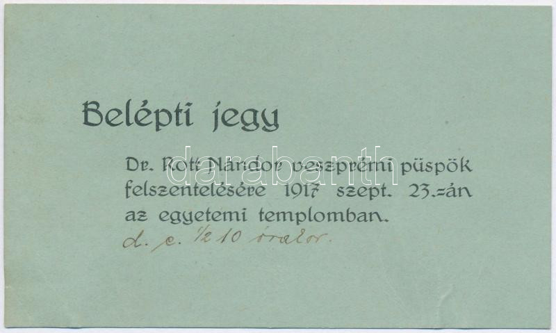 1917 Belépőjegy Rott Nándor (1869-1939) veszprémi püspök felszentelésé... https://www.darabanth.com/de/276-Fernauktion/276.0/Andere-Sammelgebiete/Dokument~200017/1917-Belepojegy-Rott-Nandor-1869-1939-veszpremi-puspok-felszentelesere~II1409415